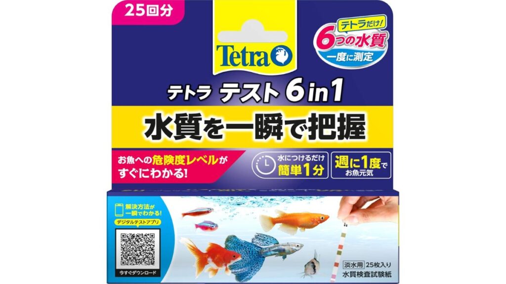 初心者でも手軽に水質チェックができる万能試験紙です。pH、GH、KH、NO2、NO3、塩素の6項目を一度に測定でき、コストパフォーマンスも抜群。水に浸して色を比較するだけの簡単操作で、忙しい方でも継続して水質管理ができます。
